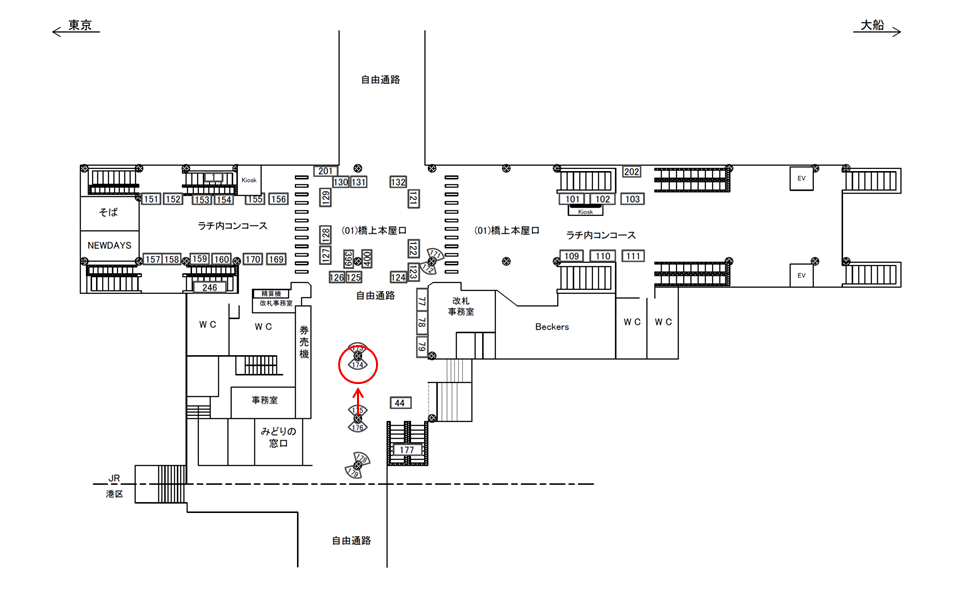 ○橋上本屋口№151 改札内コンコース(北改札付近) |