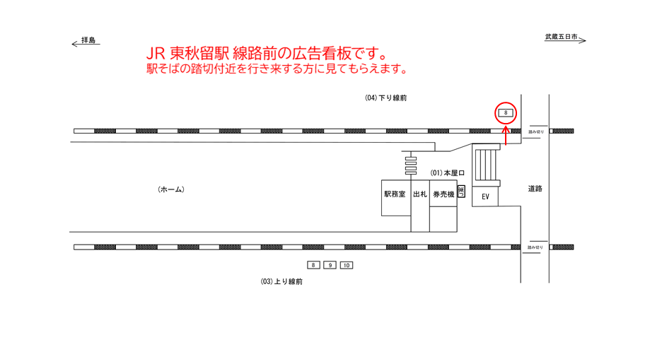 ■ 駅看板「JR 東秋留駅 下り線前№8」の広告ロケーション