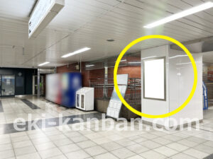 JR関内駅は北口側改札とホームに広告用ポスターボードがあります。1週間1枚から利用可。短期的に広告を掲載したい方向けの広告商品です。
