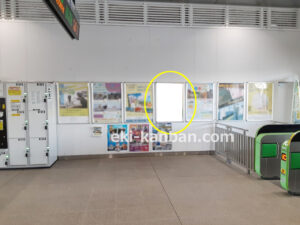 JR内房線 袖ケ浦駅の看板です。 改札機横の壁面に設置された非電飾タイプの広告で、主に移動中に見せることのできる看板です。 目線の高さにあり、改札通過時はいずれのタイミングでも広告との接触が期待できます。 袖ケ浦駅利用者へ対して反復的な視認が見込まれます。 広告の刷り込み効果を狙った広告展開や、周辺店舗・クリニック・施設等への誘導看板としてもお役立ていただけます。 駅看板は長期的な求人広告としてもお役立ていただけます。 袖ケ浦駅周辺で広告をお探しの方にお勧めです。 ※袖ケ浦駅の広告の最新の販売状況につきましては、お手数ですが直接お問合せ下さいませ。