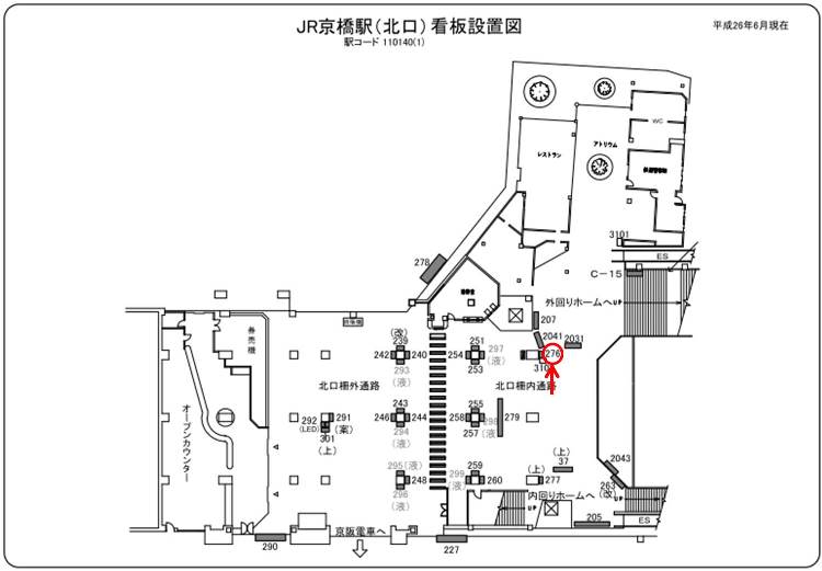 京橋駅 北口柵内通路にございます電飾タイプの広告看板となります。