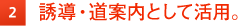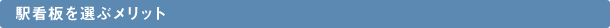 直接、来店を促す案内看板としてご利用頂くことで、駅周辺施設への道標、また企業認知などにお役立て頂けます。地域密着の特性が強い駅看板ならではの活用法です。