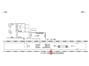 1番線・2番線の中央線プラットホームの中ほどに位置しており、JR日野駅の改札へ向かう時に使う階段のそばでもあります。