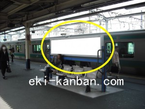 JR柏駅の常磐線快速ホームに設置されたベンチ広告です。背もたれの後ろ部分を広告スペースとして使用します。