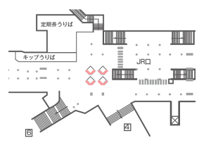 1番出口から階段で改札階に降りた際、正面見える場所にあります。または、芝口改札から2番出口へ向かう際にも視界に入りやすいロケーションです。