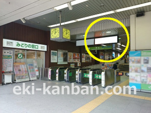 南口側改札の上部に設置された吊り下げタイプの電飾看板です。看板の向きは外側(ロータリー側)を向いており、南口ロータリーを行き来される方、中野駅に南口側改札から入る方にご覧頂けるロケーションです。