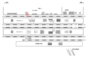 改札口は西武線との乗り換え改札を含め2箇所、出入り口は北口、南口の2箇所ございます。