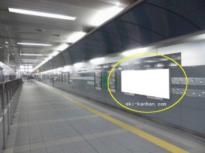 長堀鶴見緑地線 大阪ビジネスパーク駅の改札外通路(JR大阪環状線方向)に設置された、電飾タイプの広告看板です。