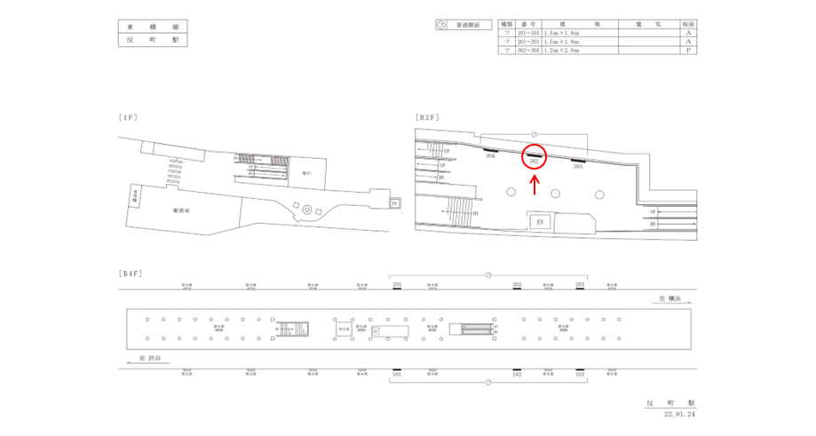 ・B1階にある改札とB4階の東急東横線ホームをつなぐB2階壁面