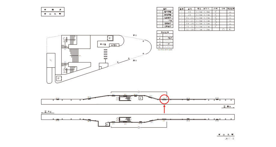 ・東急東横線(横浜方面行き)ホームの中間車両停車位置付近、ホーム上