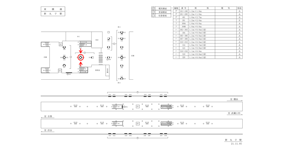 改札内コンコースの柱に設置された駅看板枠です。主にホームから改札に向かう際に見える看板です。新丸子駅で下車した乗客が必ず通る動線上にございますので、多くのリーチが見込めます。