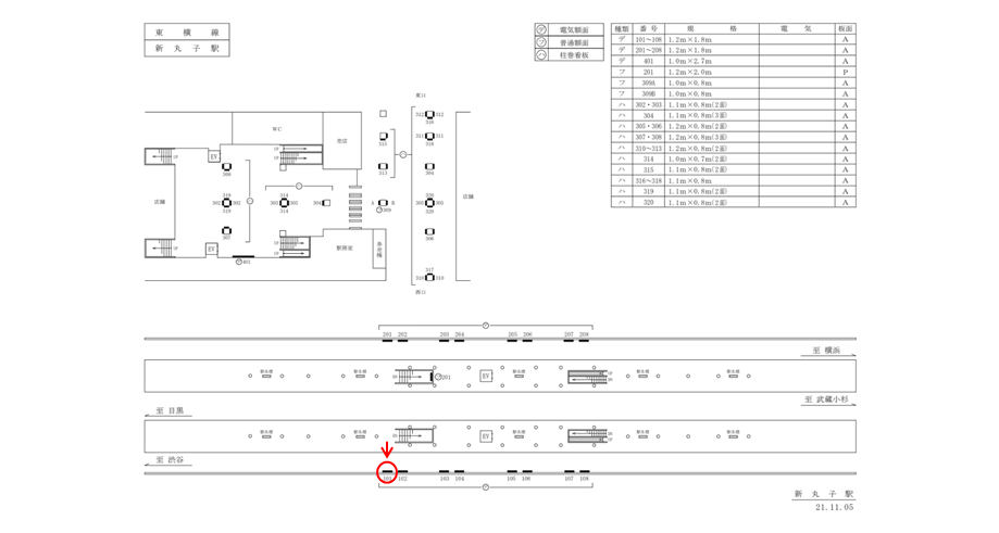 駅看板「東急東横線 新丸子駅 電気額面 №101」