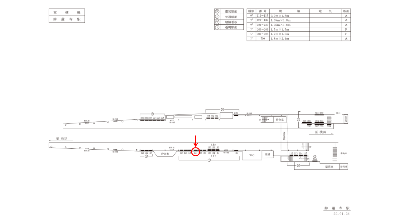 ○TY電気額面№114 改札内通路・ホーム上(東横線 渋谷方面) |