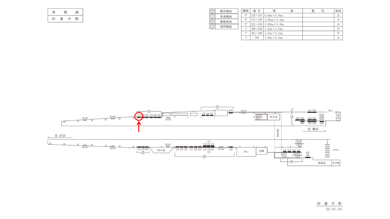 ○TY電気額面№114 改札内通路・ホーム上(東横線 渋谷方面) |