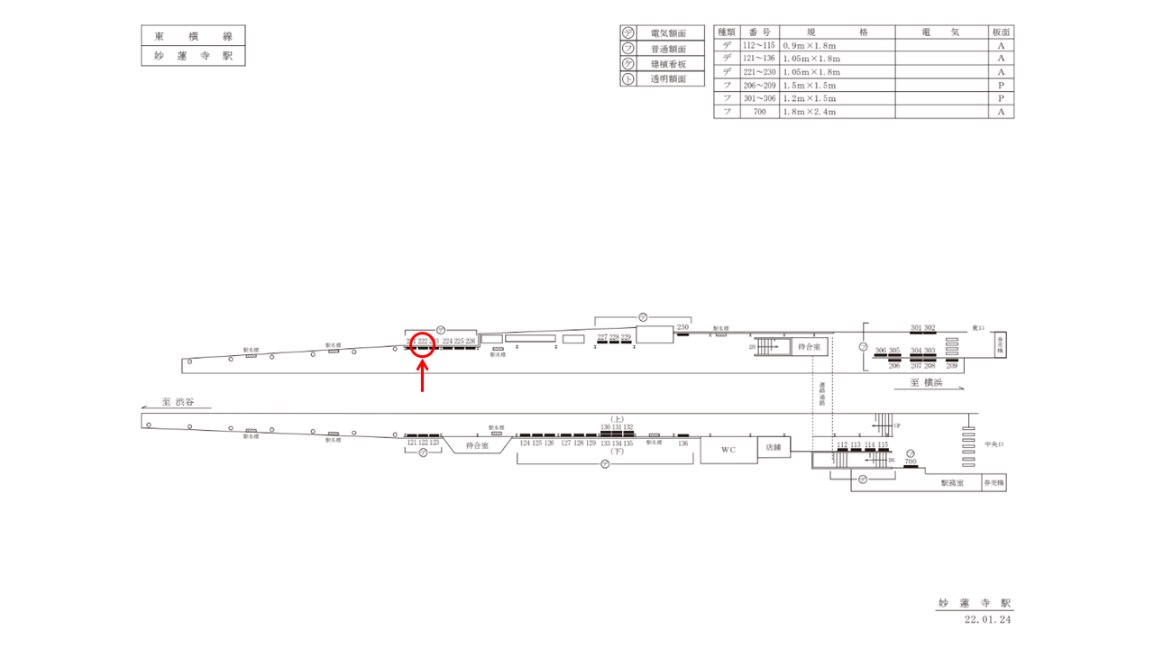 ○TY電気額面№113 改札内通路・ホーム上(東横線 渋谷方面) |