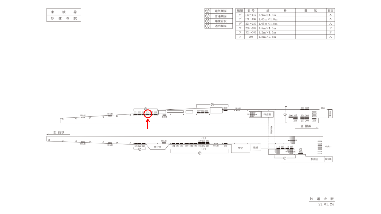 ○TY電気額面№113 改札内通路・ホーム上(東横線 渋谷方面) |