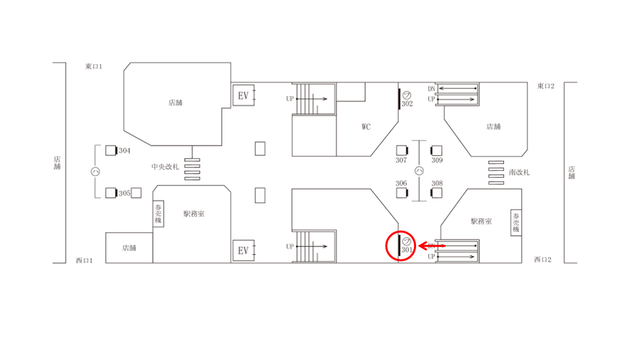 改札階と東横線・渋谷方面ホームを結ぶエスカレーター付近に位置し、通行動線上で多くの乗降客の視界に自然と入るロケーションです。