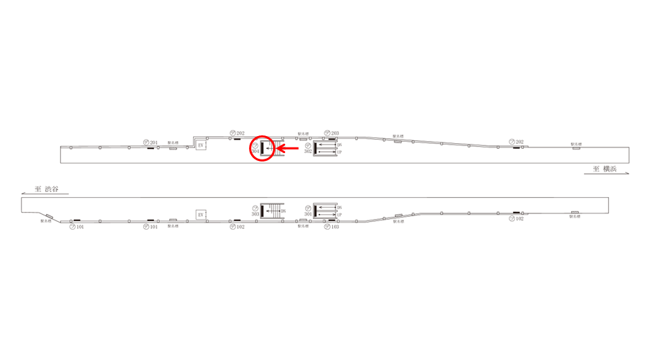 本媒体は、祐天寺駅 東急東横線(横浜方面行き)ホーム中ほどの階段上部に設置されています。階段を下りる際に正面に見えるロケーションのため、利用者の目に自然と入りやすく、高いリーチが期待できます。