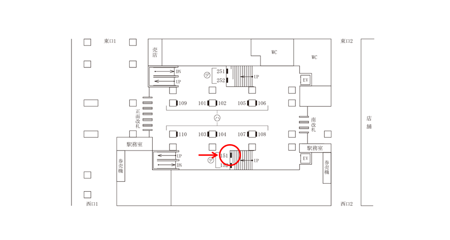本媒体は、東急中目黒駅の東横線ホーム(渋谷方面)から改札内コンコースへ向かう際の階段上に設置されています。二つ並びの左側の看板です。乗降客の動線上に設置されているため、反復的な訴求が可能です。
