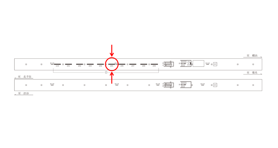 本媒体は東急東横線(横浜方面)ホーム、後方~中間車両停車位置付近のホーム上に設置されています。両面仕様で、渋谷寄りの奥から6基目の看板です。
