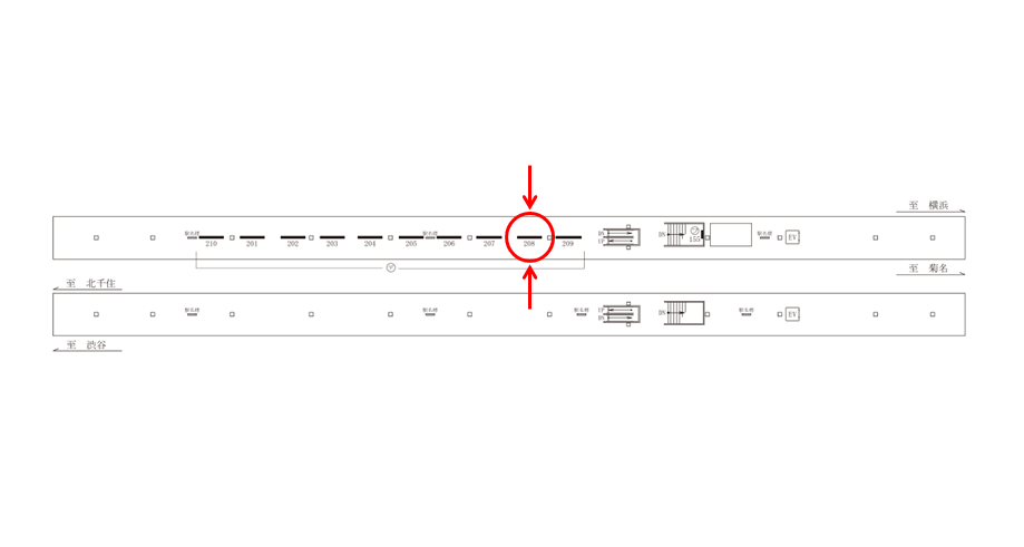 本媒体は東急東横線(横浜方面)ホーム、中間車両停車位置付近のホーム上に設置されています。両面仕様で、ホーム上エスカレーターから見て2基目の看板です。
