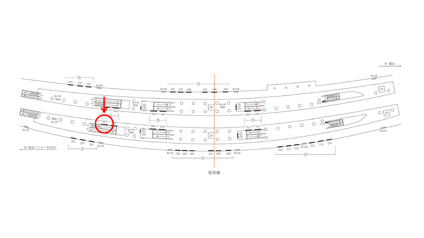 ○TY普通額面№505 ホーム上(東横線・東京メトロ副都心線) |