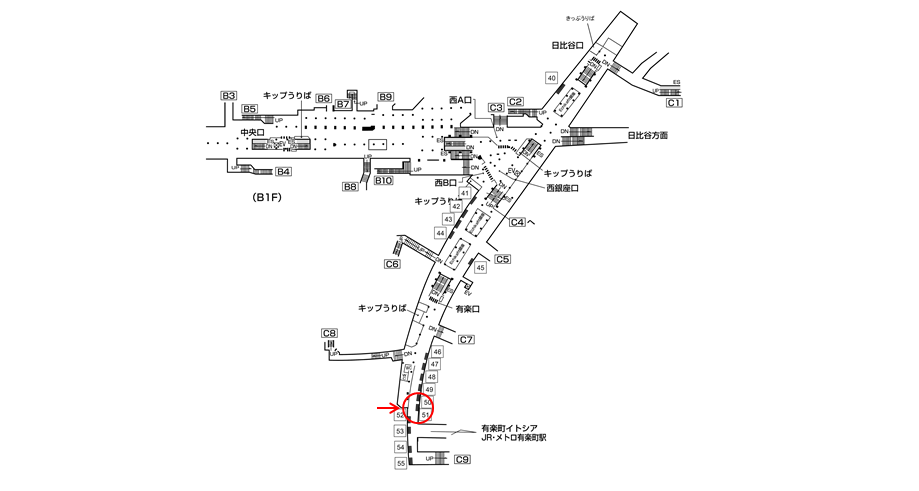 ○丸ノ内線№52 改札外コンコース(有楽町方面改札) |