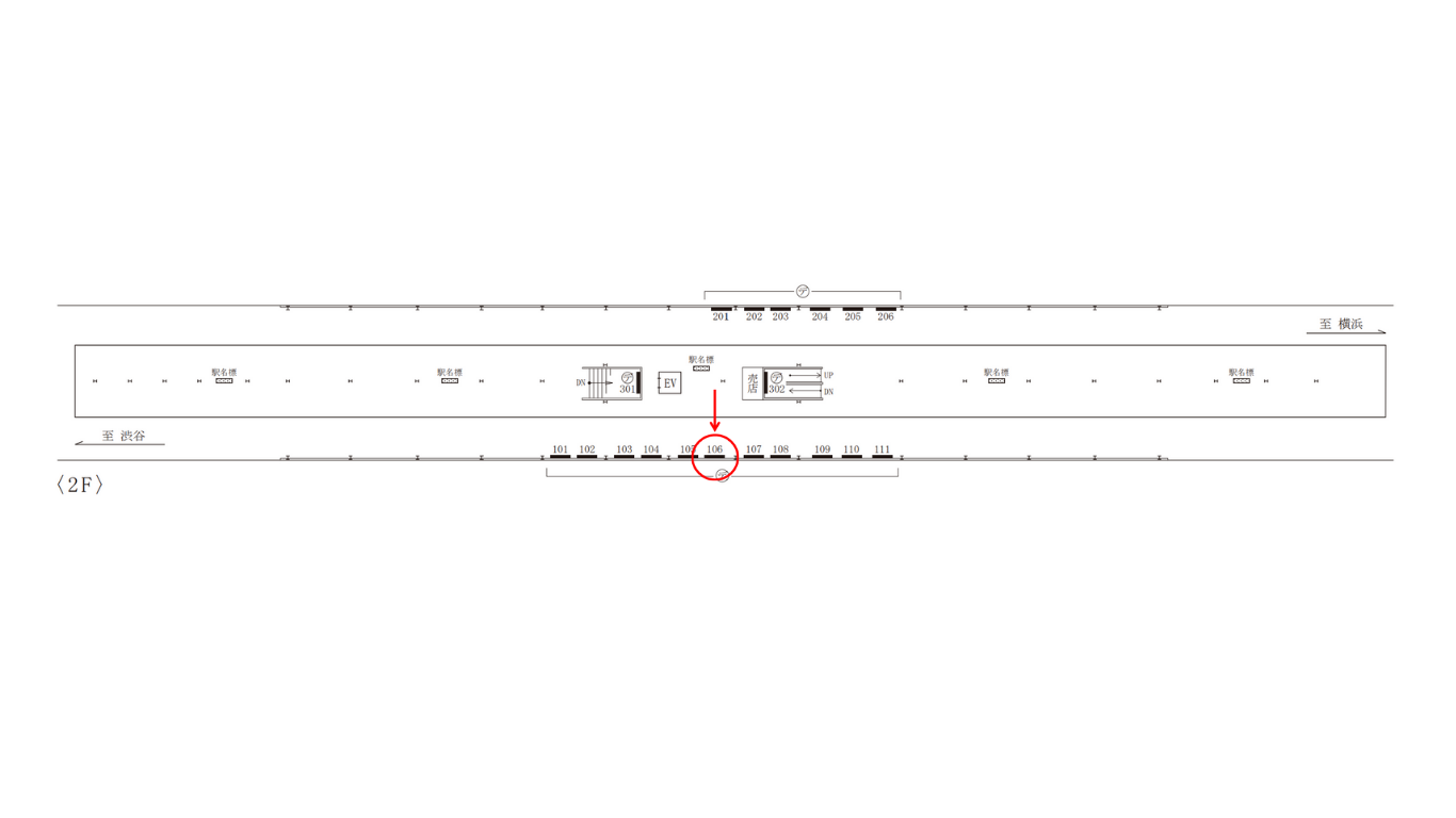 本媒体は、東急東横線(渋谷方面)ホームの中間車両停車位置付近、線路前に設置されています。11基連続で並ぶ看板群のうち、渋谷寄りの6基目にあたります。