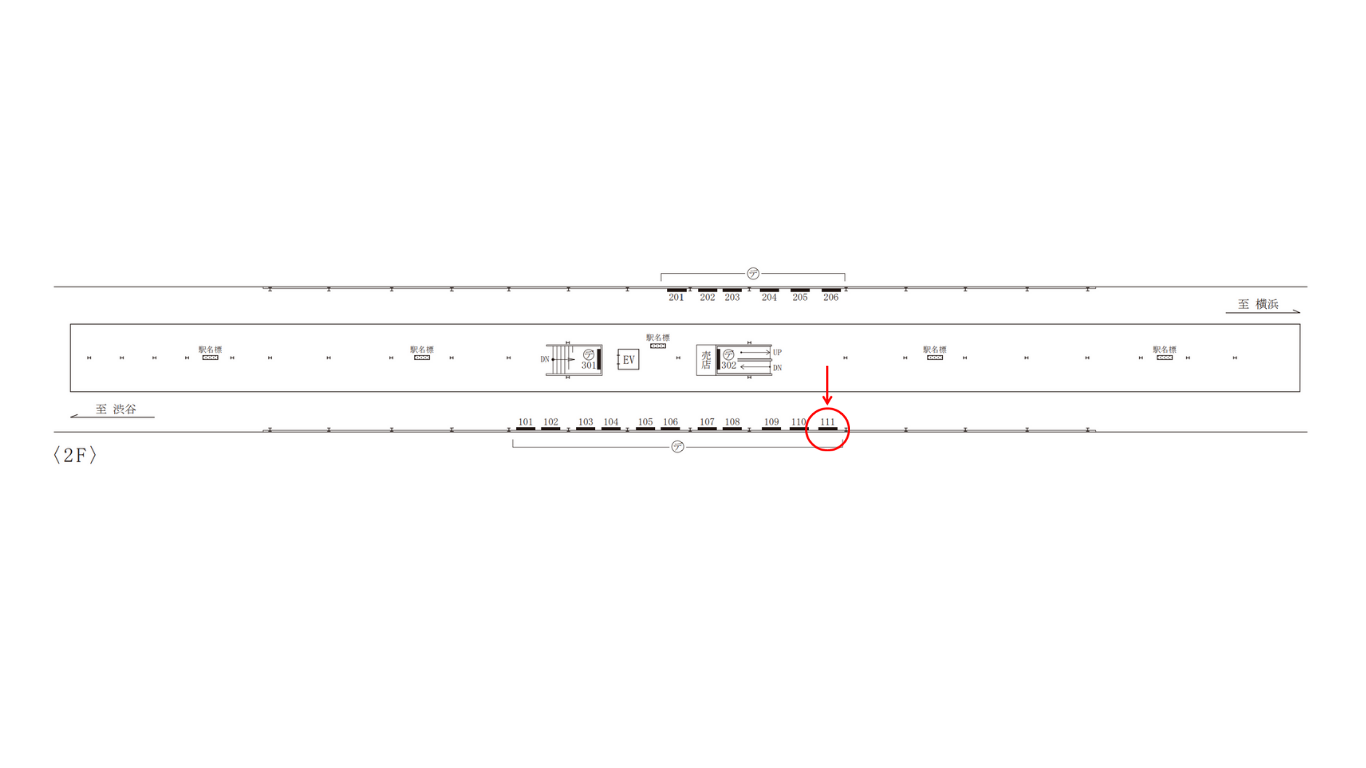 本媒体は、東急東横線(渋谷方面)ホームの中間車両停車位置付近、線路前に設置されています。11基連続で並ぶ看板群のうち、横浜寄りの1基目にあたります。