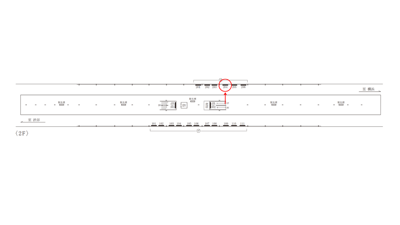 本媒体は、東急東横線(横浜方面)ホームの中間車両停車位置付近、線路前に設置されています。6基連続で並ぶ看板群のうち、横浜寄りの3基目にあたります。