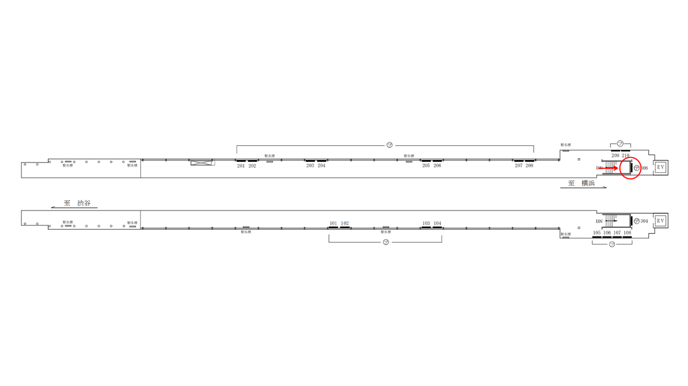 本媒体は、東横線ホーム(横浜方面)から改札階へ下りる際の階段上部に設置されています。