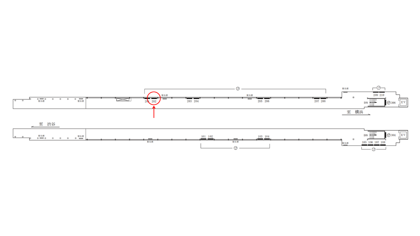 本媒体は、東横線ホーム上(横浜方面)の壁面に設置されています。後方車両停車付近、渋谷寄り2基目に位置する看板です。