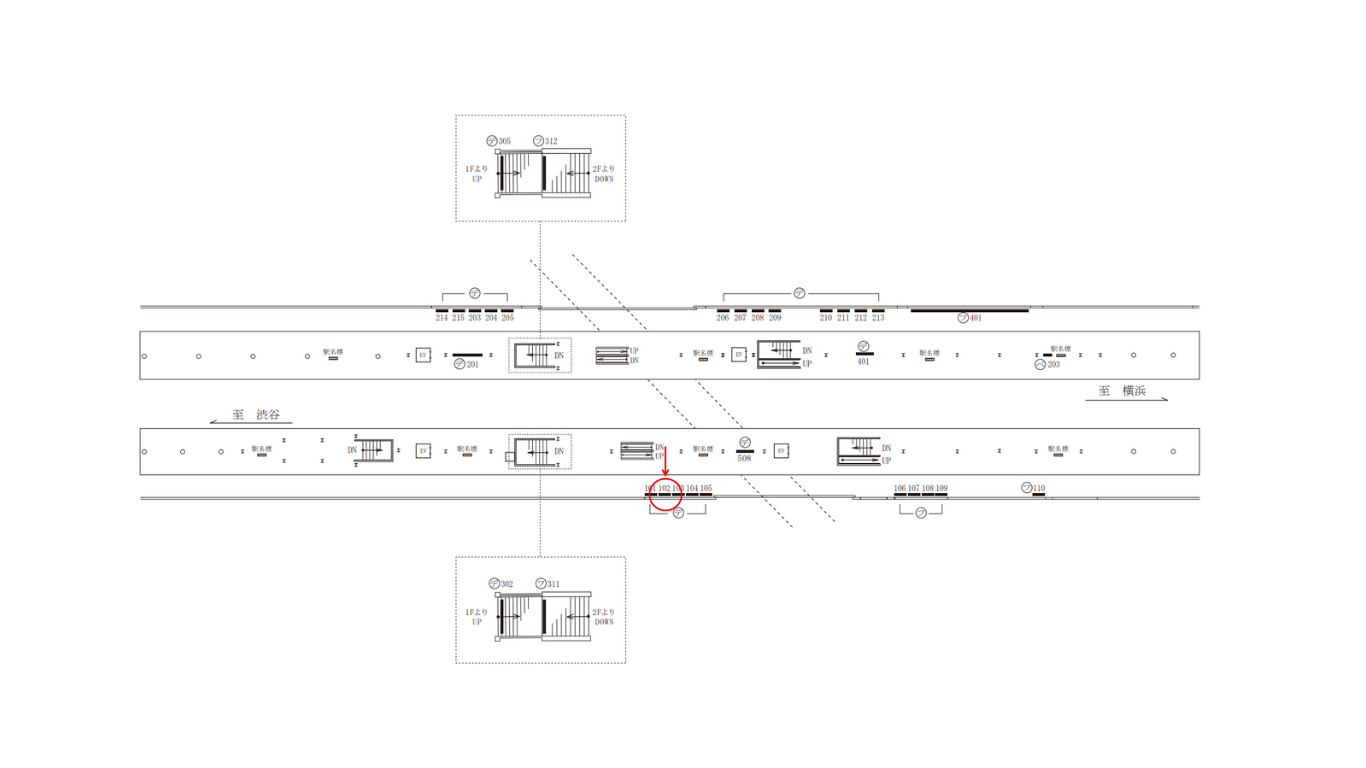 本媒体は、東横線ホーム(渋谷方面)中間車両停車位置付近、線路前に設置された6連の看板のうち渋谷寄り2基目の看板です。