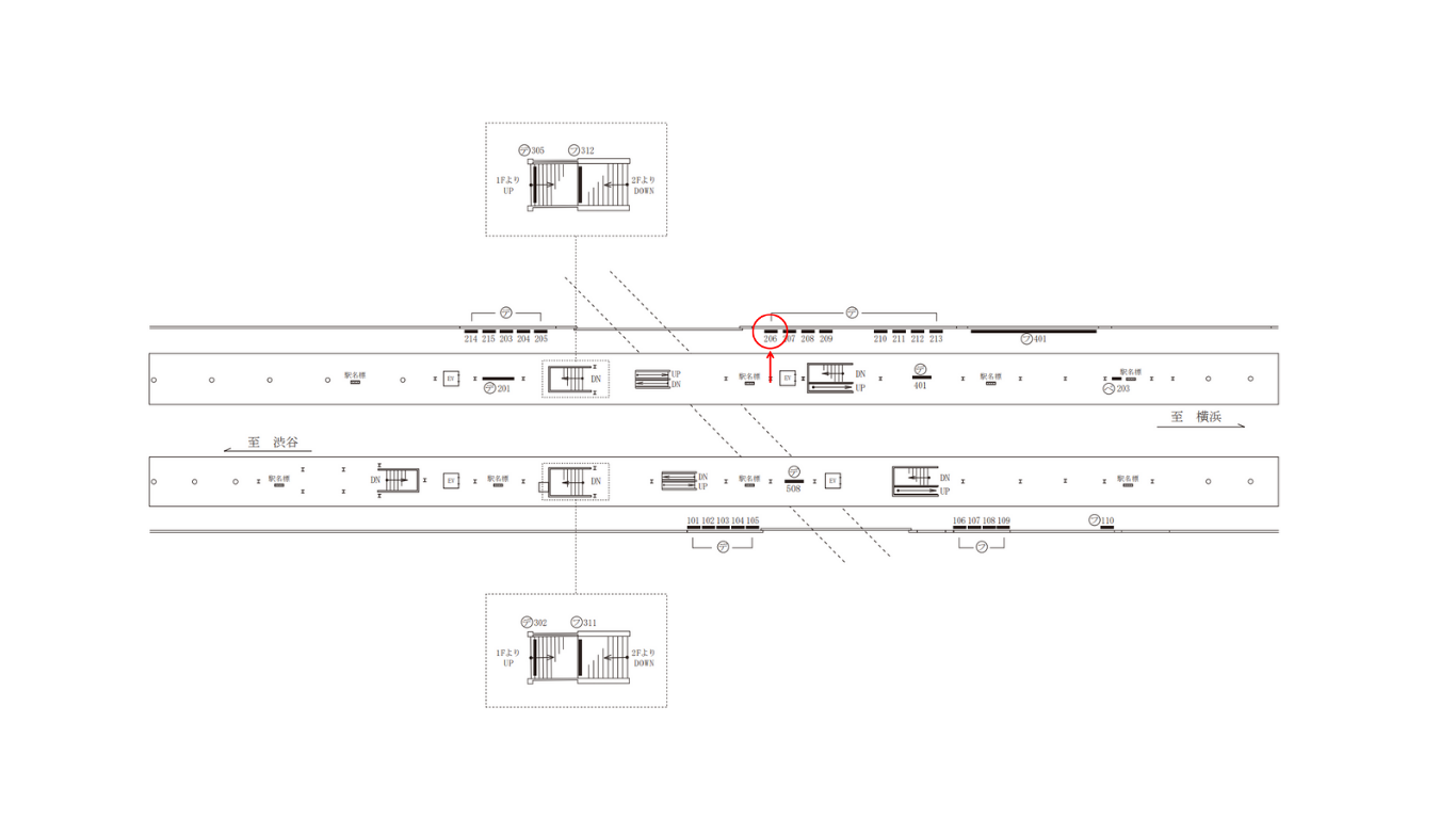 本媒体は、東横線ホーム(横浜方面)中間車両停車位置付近、線路前に設置された4連の看板のうち渋谷寄り1基目の看板です。