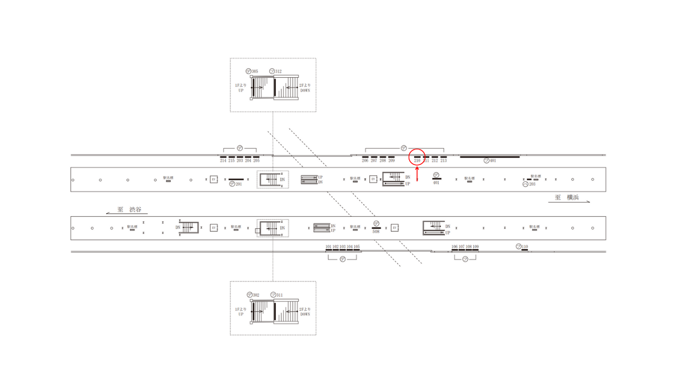 本媒体は、東横線ホーム(横浜方面)前方~中間車両停車位置付近、線路前に設置された4連の看板のうち横浜寄り4基目の看板です。