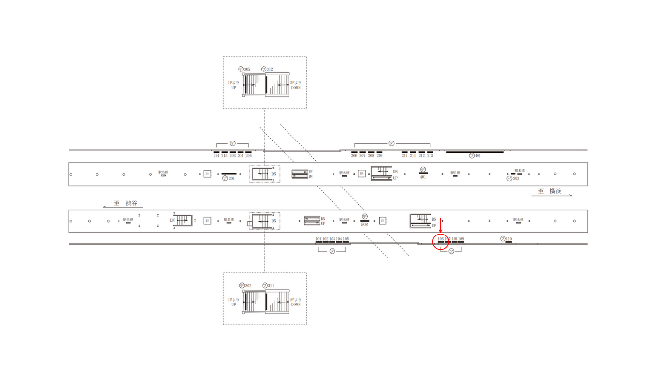 本媒体は、東横線ホーム(渋谷方面)後方車両停車位置付近の線路前に設置された4連看板のうち、横浜寄りの4基目です。