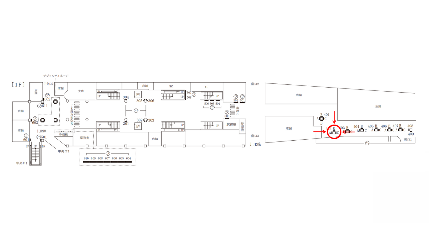 ○柱巻看板№405 改札外コンコース(南口 柱) |