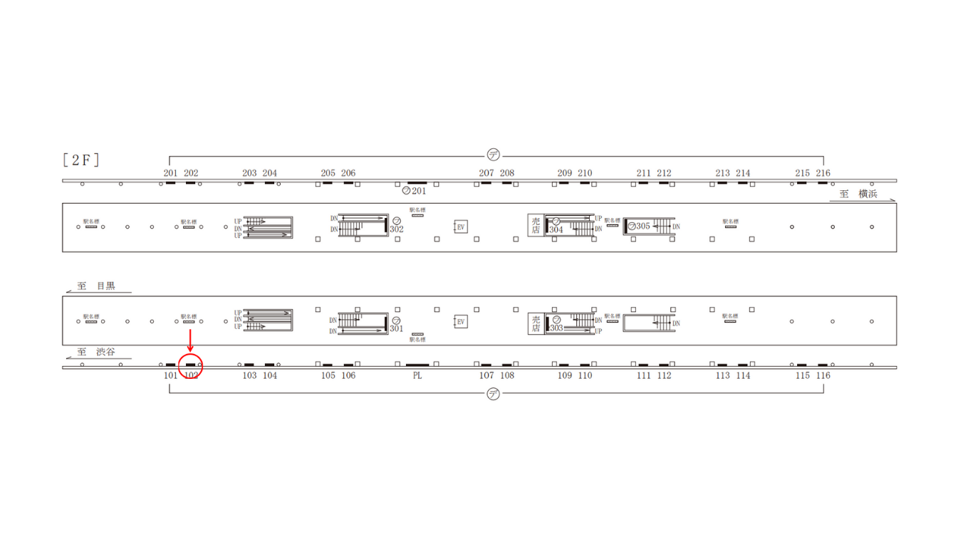 ○電気額面№101 線路前(東急東横線 渋谷方面ホーム JR線方面改札側) |