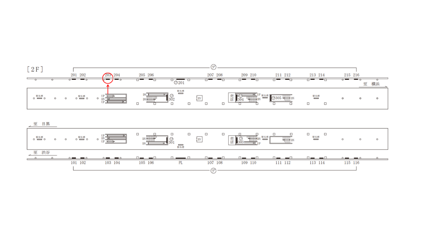 ○電気額面№202 線路前(東急東横線 横浜方面ホーム JR線方面改札側) |