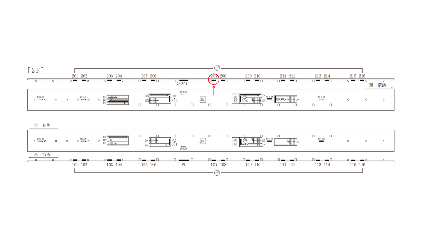 ○電気額面№206 線路前(東急東横線 横浜方面ホーム JR方面改札側) |