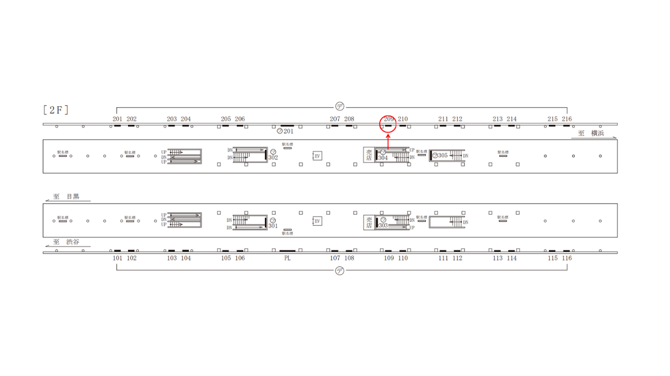 線路前(東急東横線 横浜方面ホーム JR方面改札側)