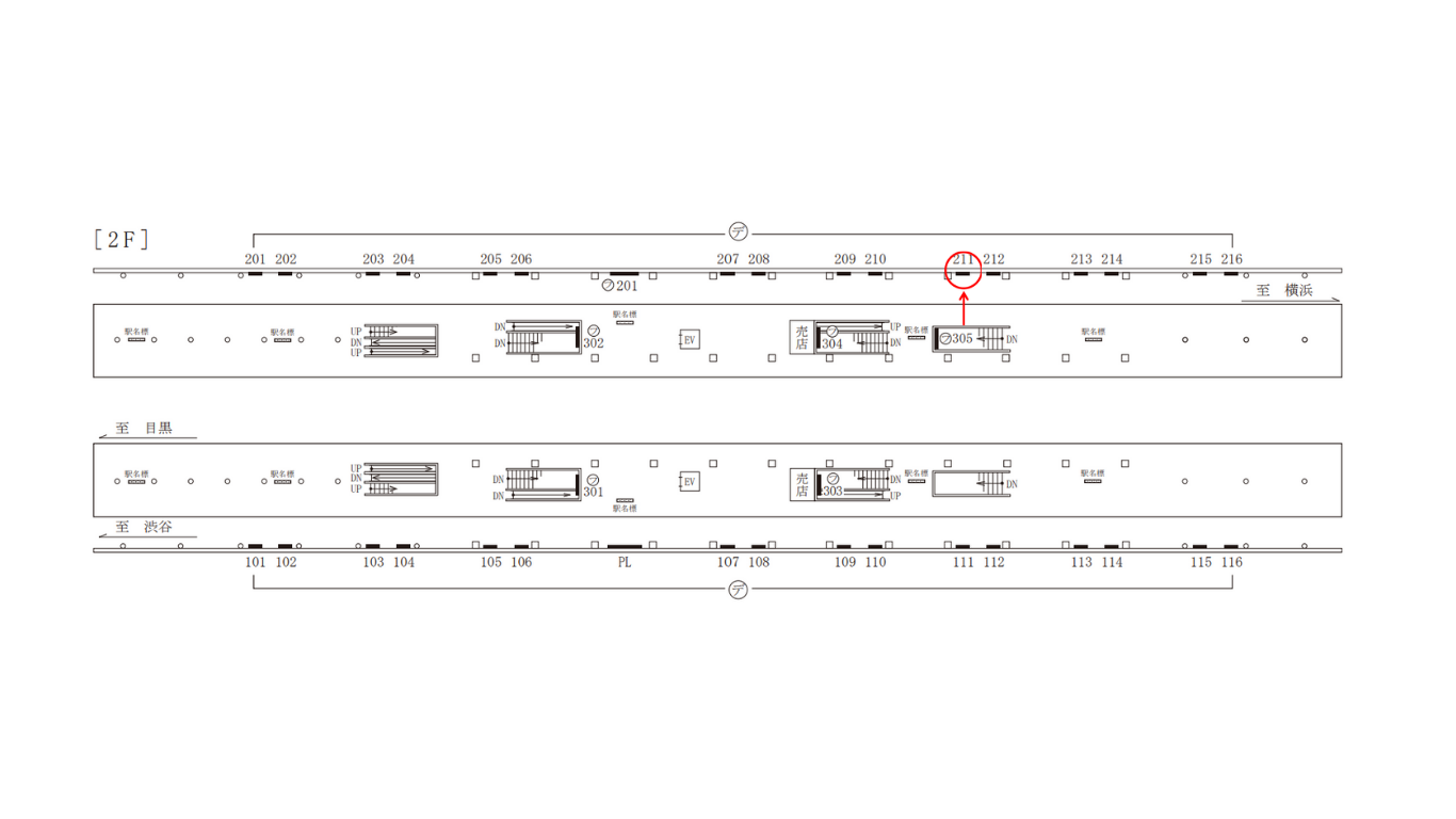 ○電気額面№201 線路前(東急東横線 横浜方面ホーム JR方面改札側) |