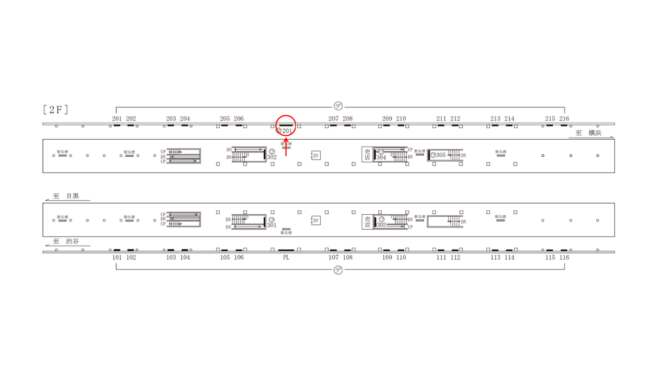 ○電気額面№201 線路前(東急東横線 横浜方面ホーム JR方面改札側) |