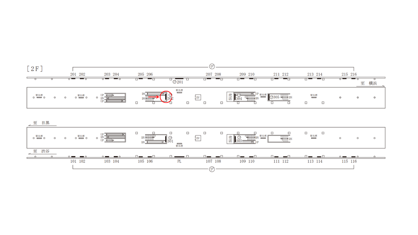 ○普通額面№303 ホーム階段正面(東急東横線 渋谷方面 南改札側) |