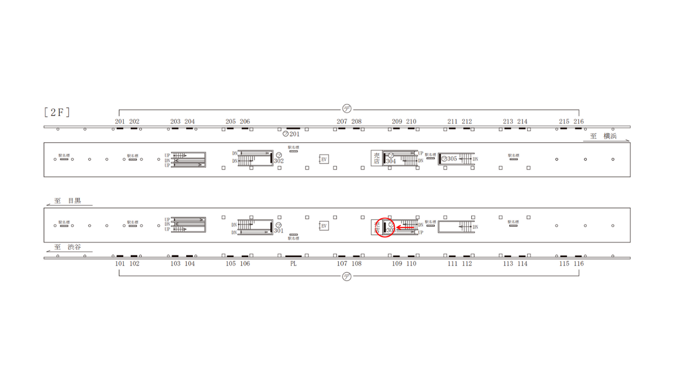 ○普通額面№305 ホーム階段正面(東急東横線 横浜方面 南改札側) |