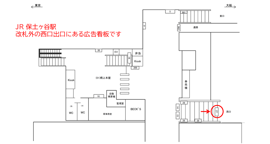 駅看板「JR 保土ヶ谷駅 橋上本屋口№27」