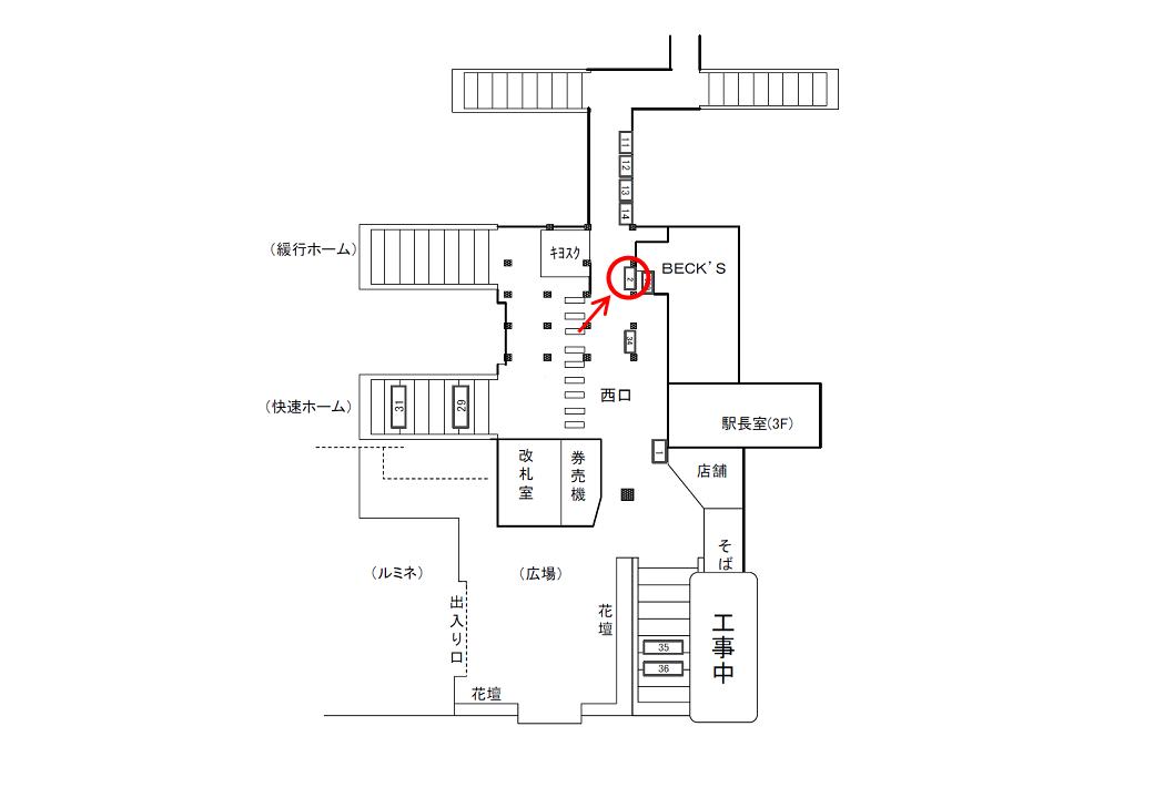 西口改札外に設置された電飾タイプの広告看板です。