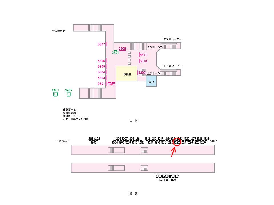 ○№1222 下りホーム(京成津田沼・成田空港・京成千葉)線路前 |