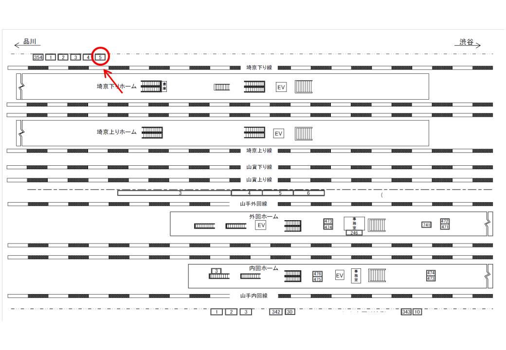 ○内回り線側№342 線路前(JR山手線内回り 品川・東京・上野方面) |
