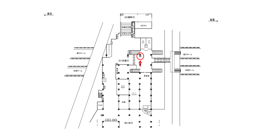 JR 四ツ谷駅、コンコースの駅広告(駅看板)設備のご紹介です。